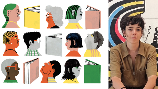 “With my illustration, I wanted to show—through a rhythmic and colourful composition—a diverse group of characters who meet, engage in dialogue and discover connections through books. I portray the fair as a space for exchange and encounter between different generations and cultures,” explains the artist.